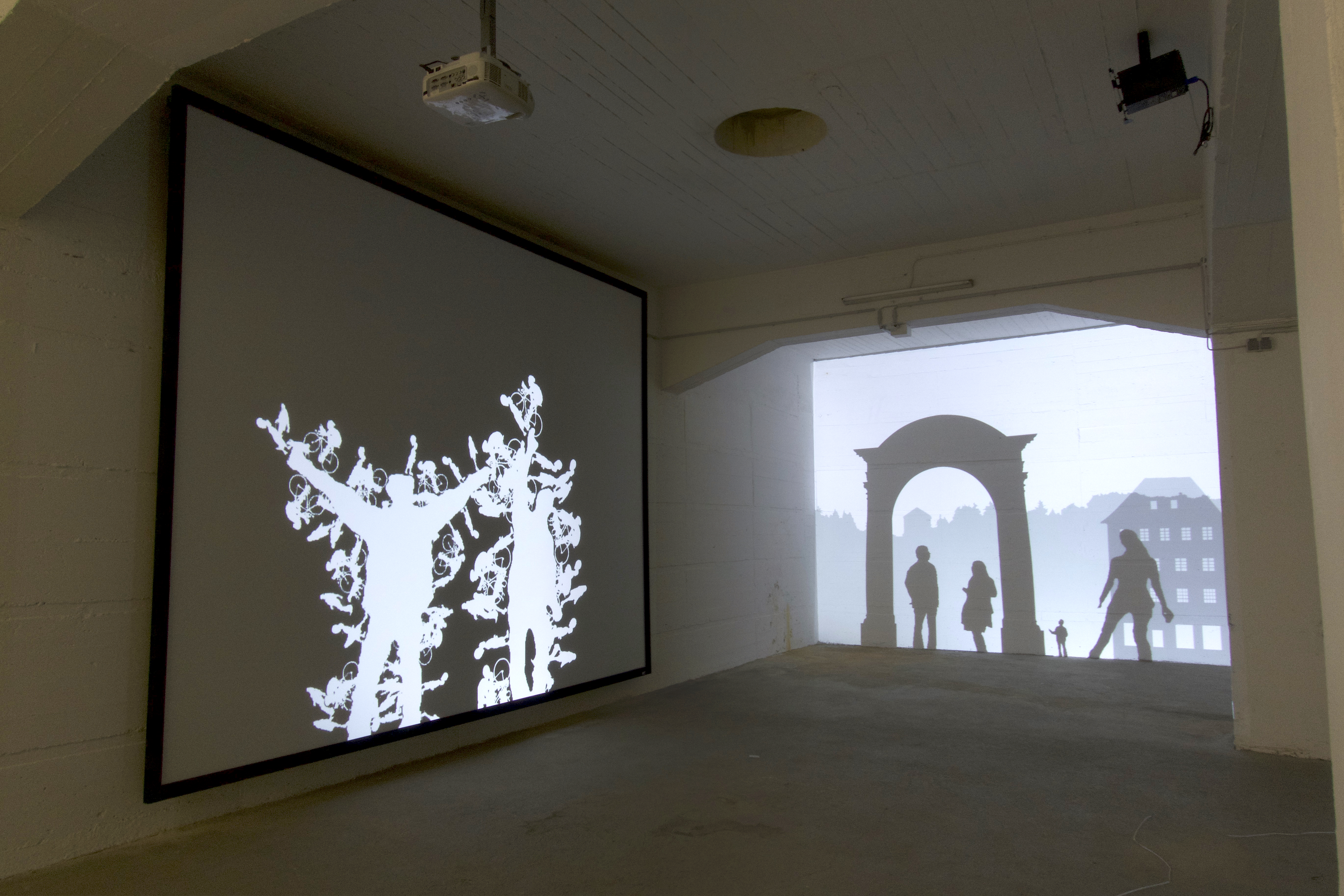 - JeongHo Park: „Silhouette Interference“, 2011, Interaktive Installation, Europäische Kunstakademie, Trier, © Fotografie: JeongHo Park, Trier 2011.